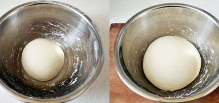 將絮狀面和成面團,反復(fù)揉面,揉至表面光滑、細膩。然后蓋上等待發(fā)酵,面團發(fā)酵至原來的2倍大,就發(fā)酵好了。