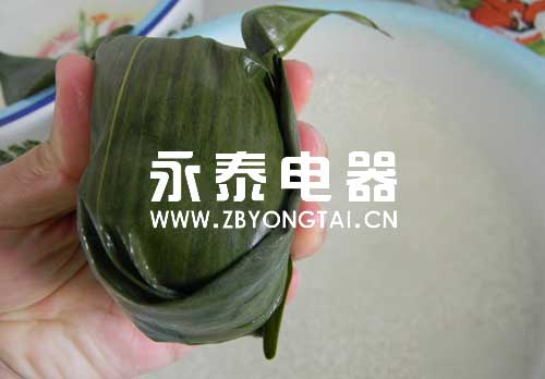 6.把包好的粽子放入電熱鍋中,加入適量的水(水不宜過多漫過粽子即可),電熱鍋三檔全開,水燒開,改為兩檔,慢慢煮至粽子熟透為止。