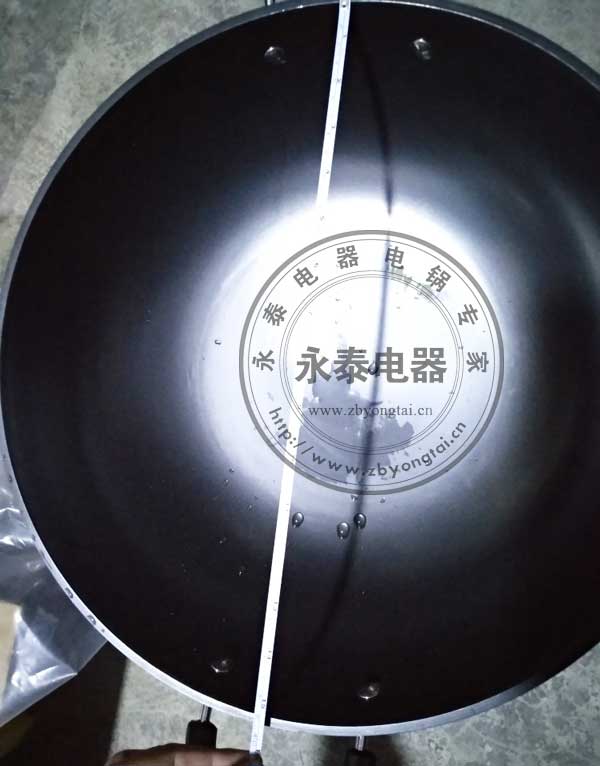 純鐵鍋,非常厚實,很有分量,很重,比普通電熱鍋重很多。我這是一口標(biāo)注為34CM的鍋,實際測量外徑36厘米,內(nèi)經(jīng)34厘米,沒有尺寸誤差,鍋形弧度很大,炒菜等操作很方便。